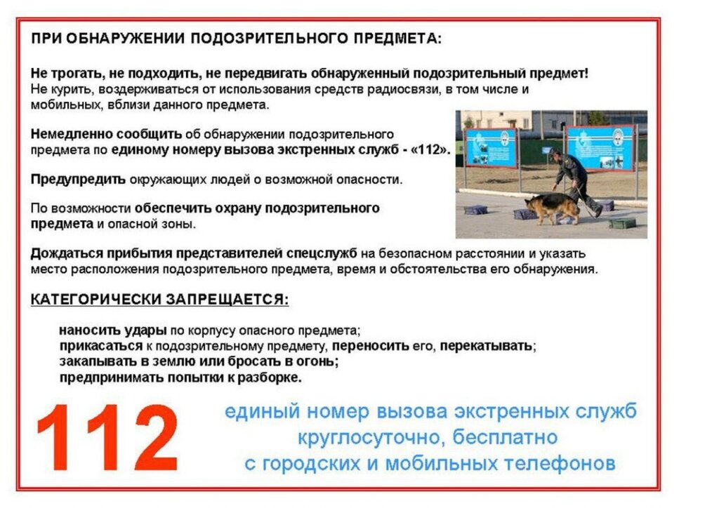 Министерство образования, науки и молодежи Республики Крым, во исполнение письма Министерства просвещения Российской Федерации от 20.11.2025 № АБ-4321/14, направляет памятки по действиям обучающихся при обнаружении бесхозных предметов для размещения на информационных стендах образовательных организаций и проведения воспитательной работы с обучающимися: